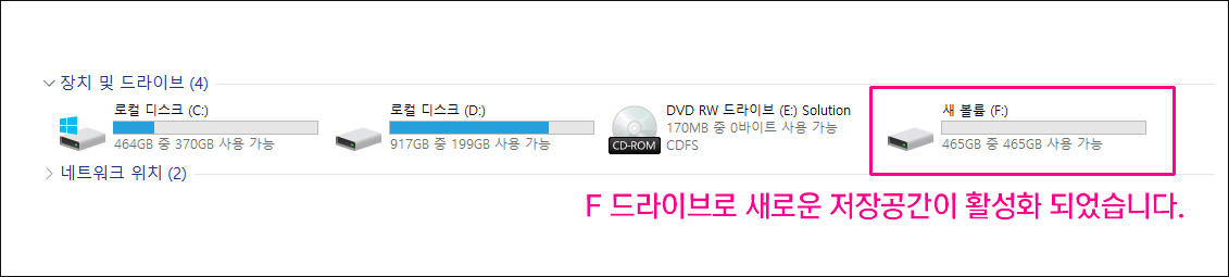 그리고 PC를 켜보면 이전 사용했던 또는 분할 된 그대로의 상태로 내PC 에 추가되어있습니다.