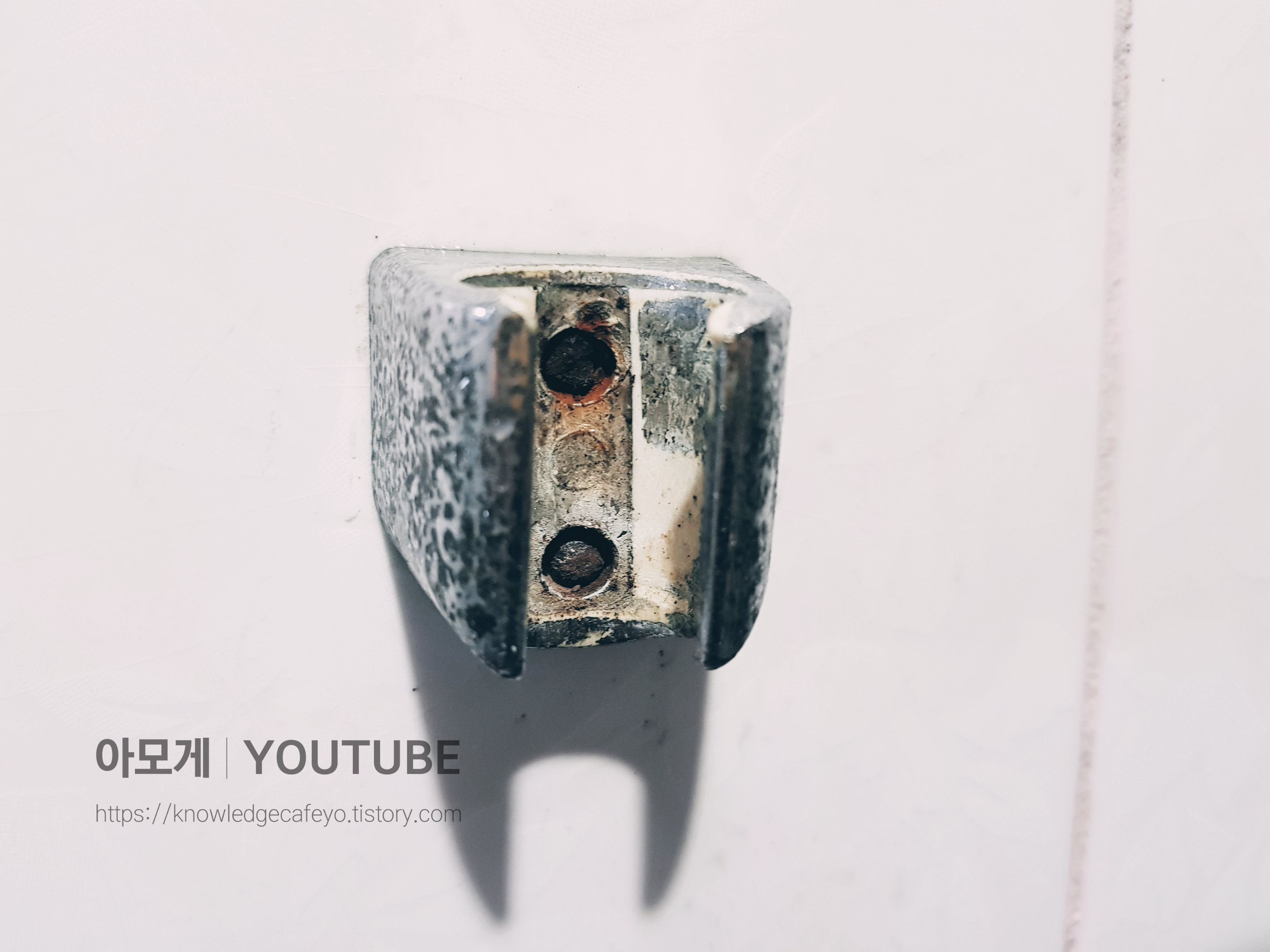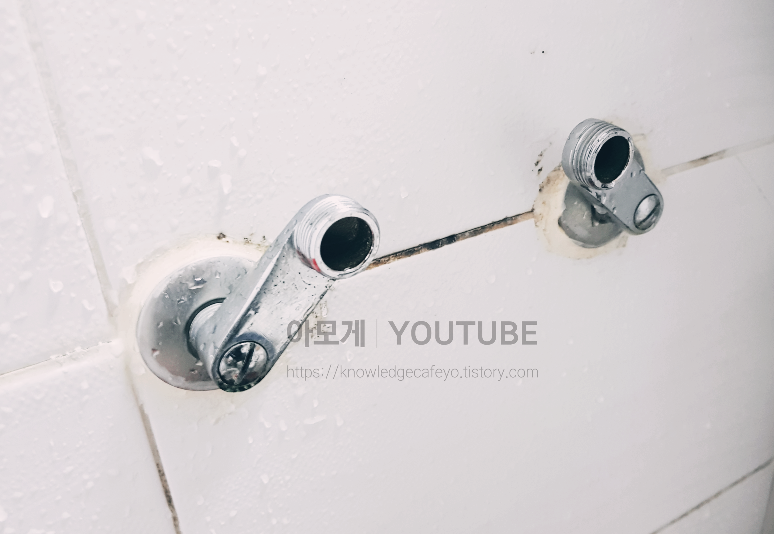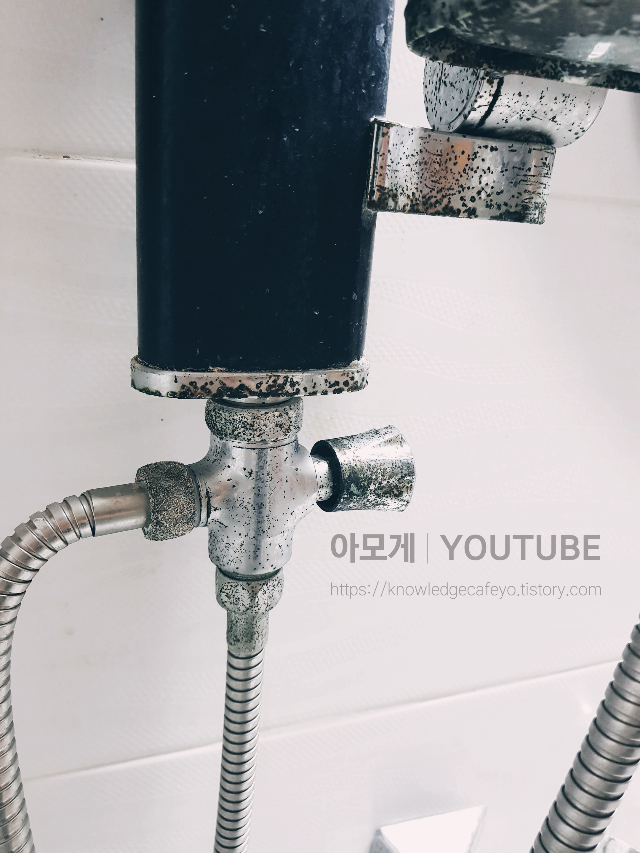 너무 오래된 샤워기 거치대의 모습을 보고 계십니다.
