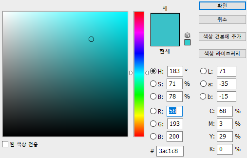 동일하게 Lab 값을 항목에 입력하고 포토샵에서 RGB 항목에 값을 입력해줍니다.