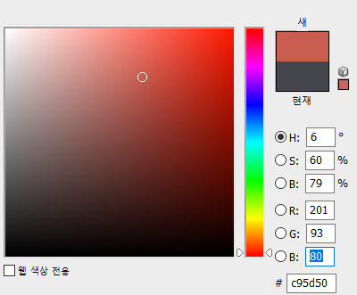 이 값을 포토샵의 RGB에 동일하게 입력을 하면